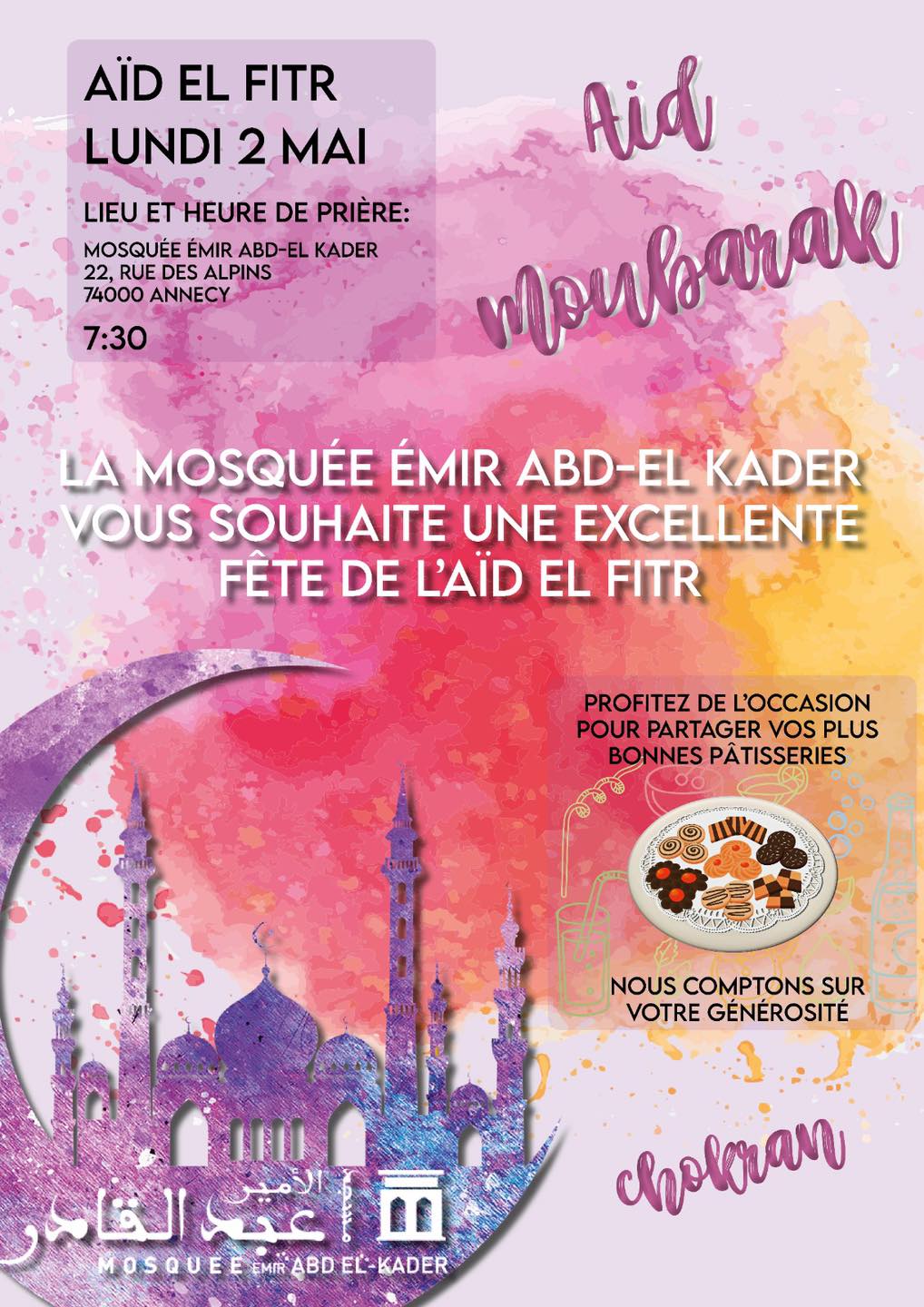 Fête de l’Aïd al Fitr – Mercredi 8 mai