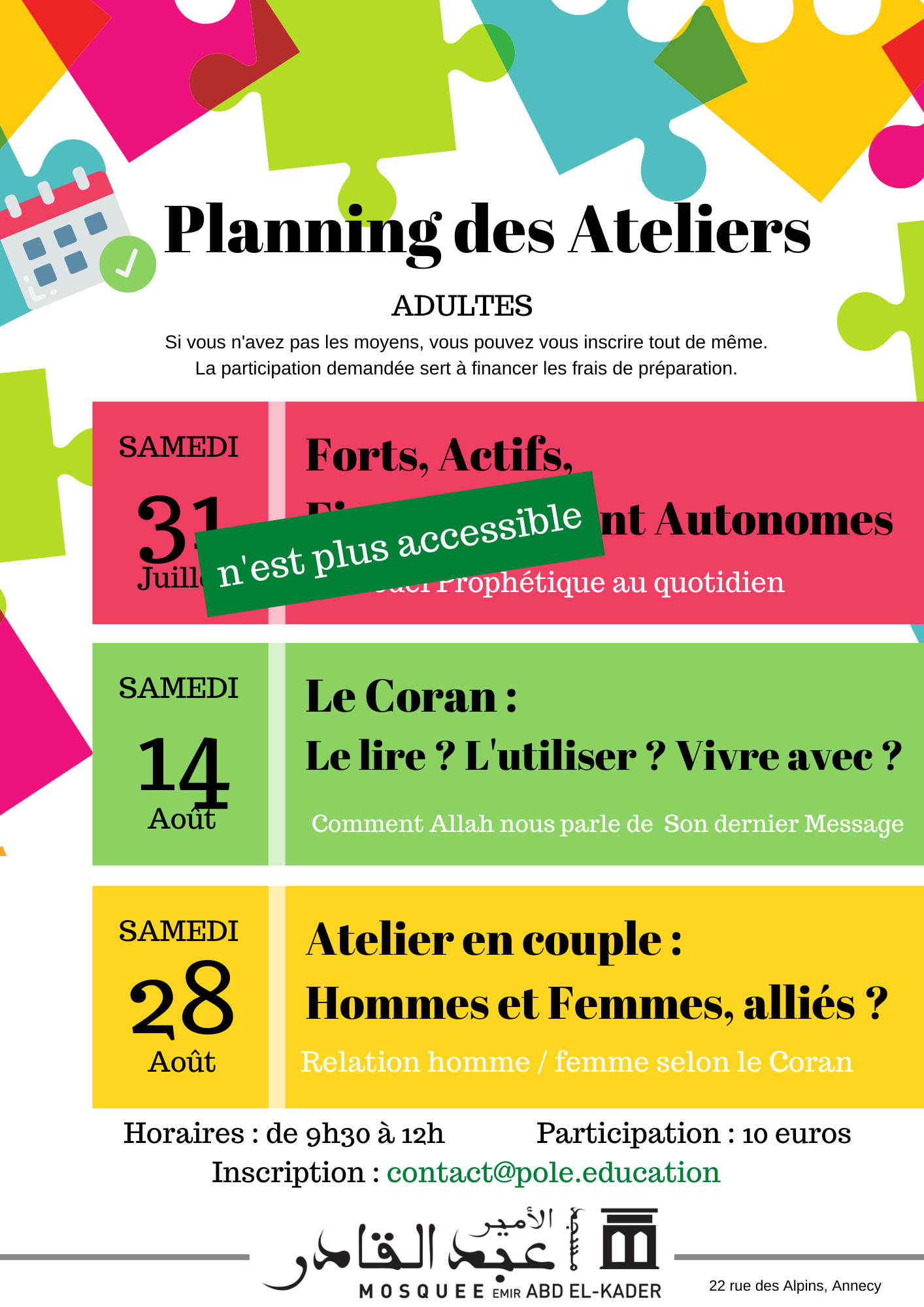 Le pôle éducation de la mosquée a le plaisir de vous annoncer la mise en…